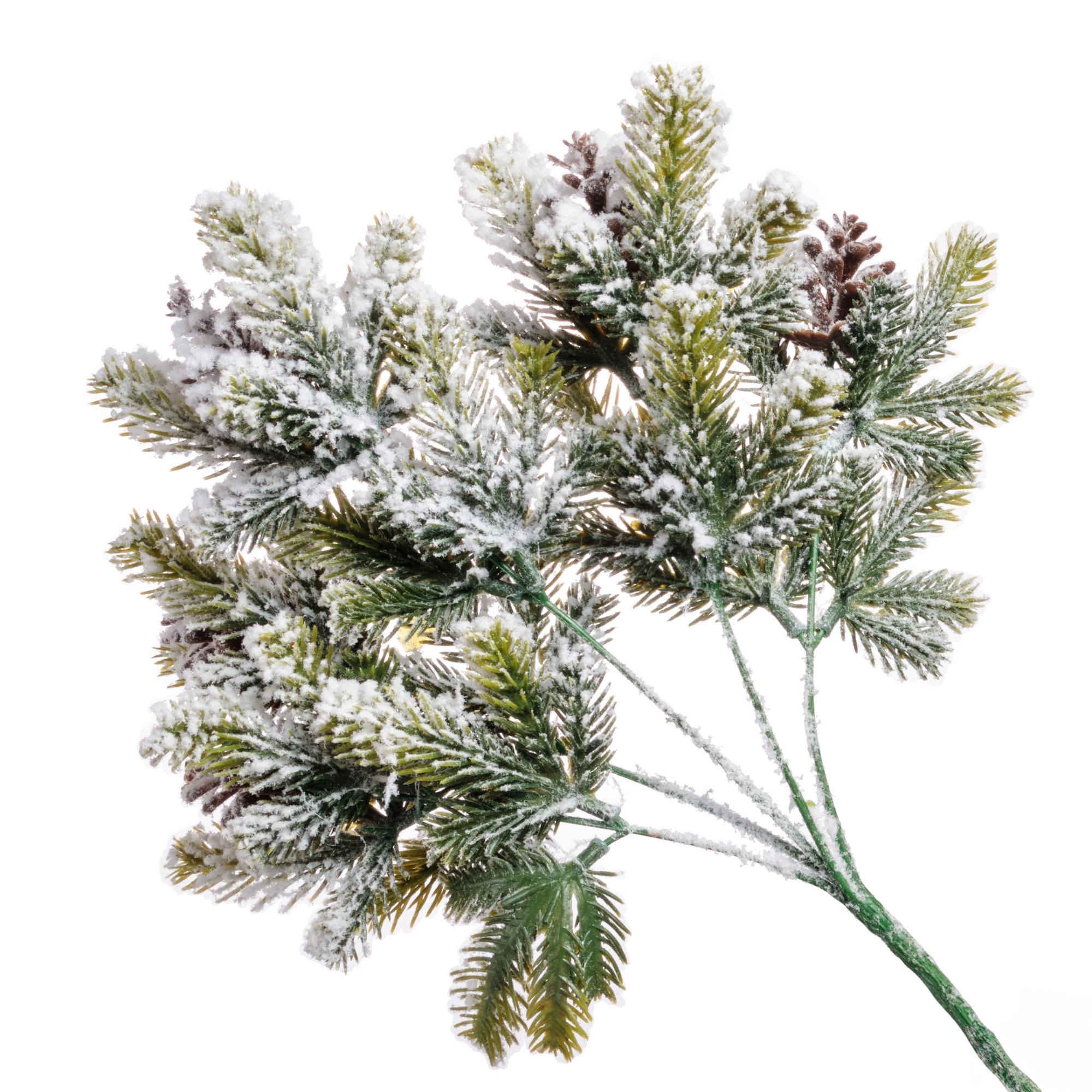 Наименование:Ветка с заснеженными цветами и шишками, 33 см