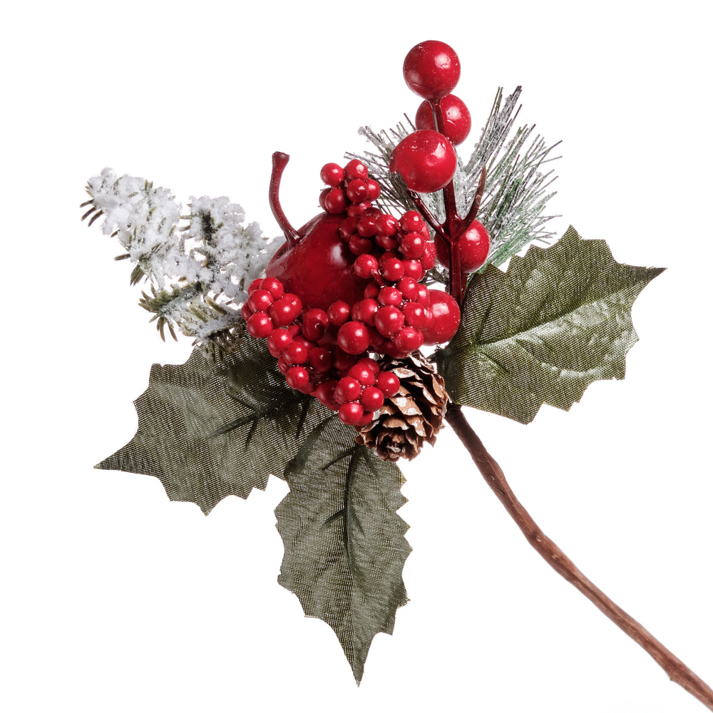 Наименование:Ветка с заснеженными цветами и шишками, 33 см